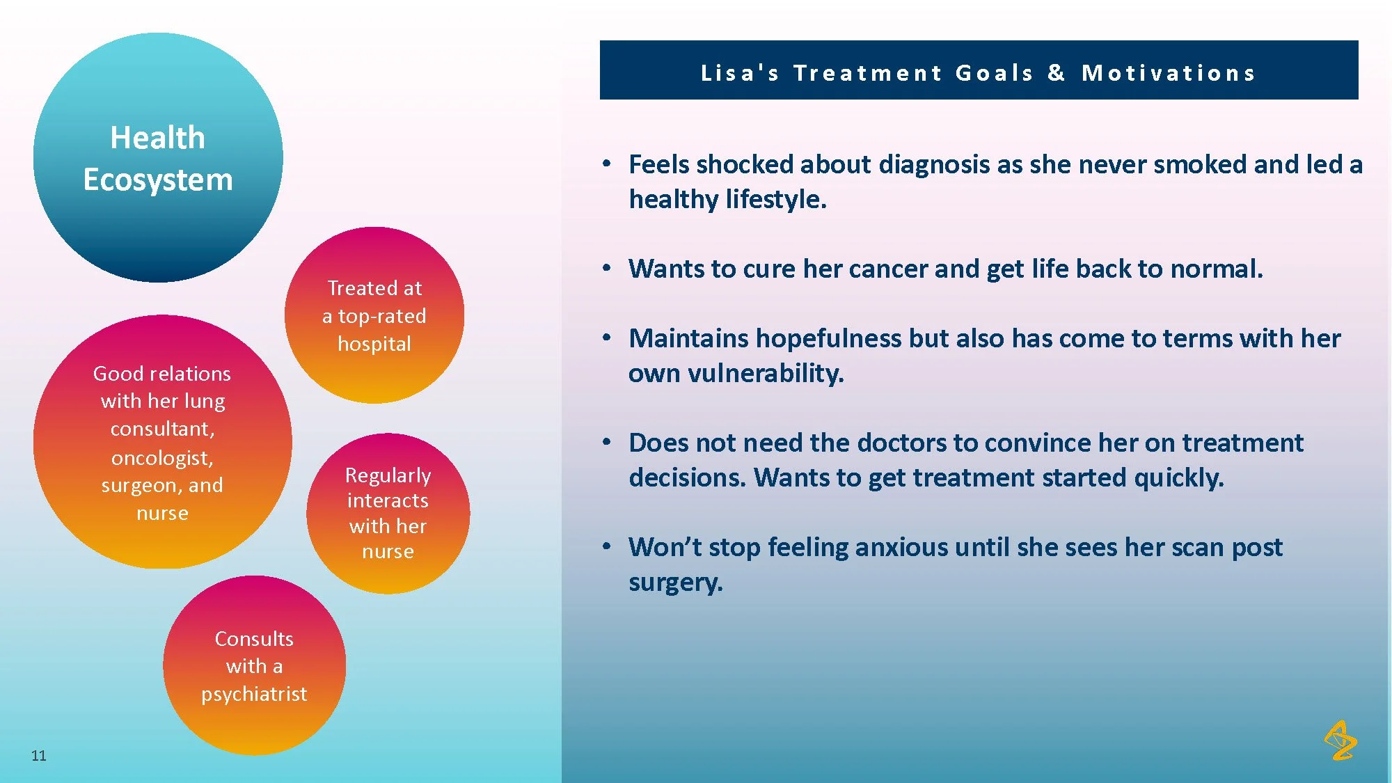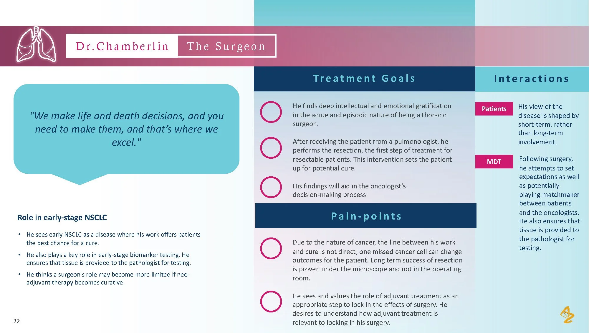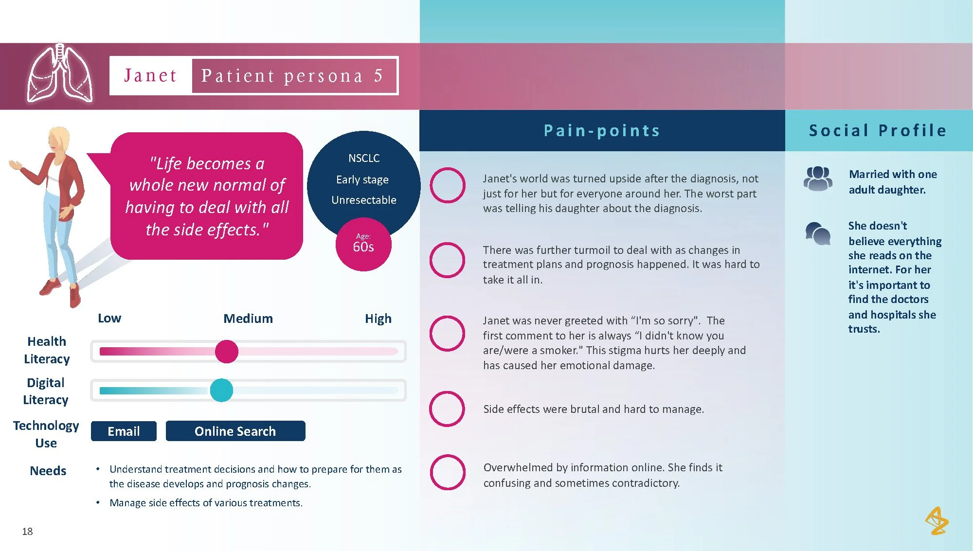 Consumer tension: Patients with lung cancer face overwhelming choices and limited personalized advice, making it difficult to feel confident in their treatment path. The lack of individualized information and support from their healthcare providers leaves patients uncertain and disconnected from their care process.