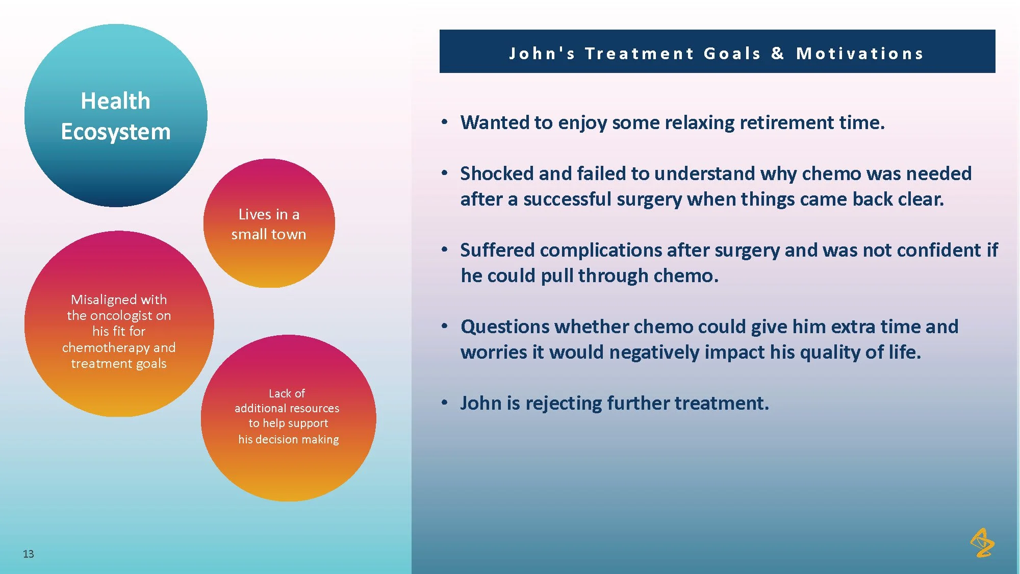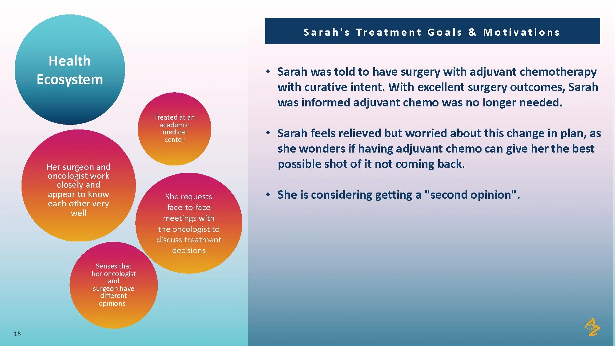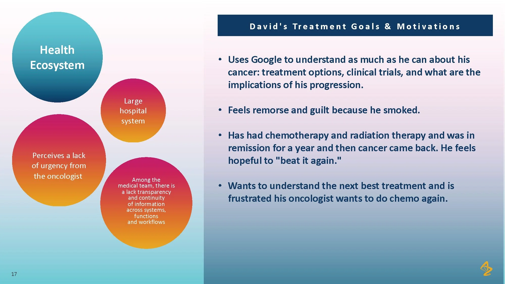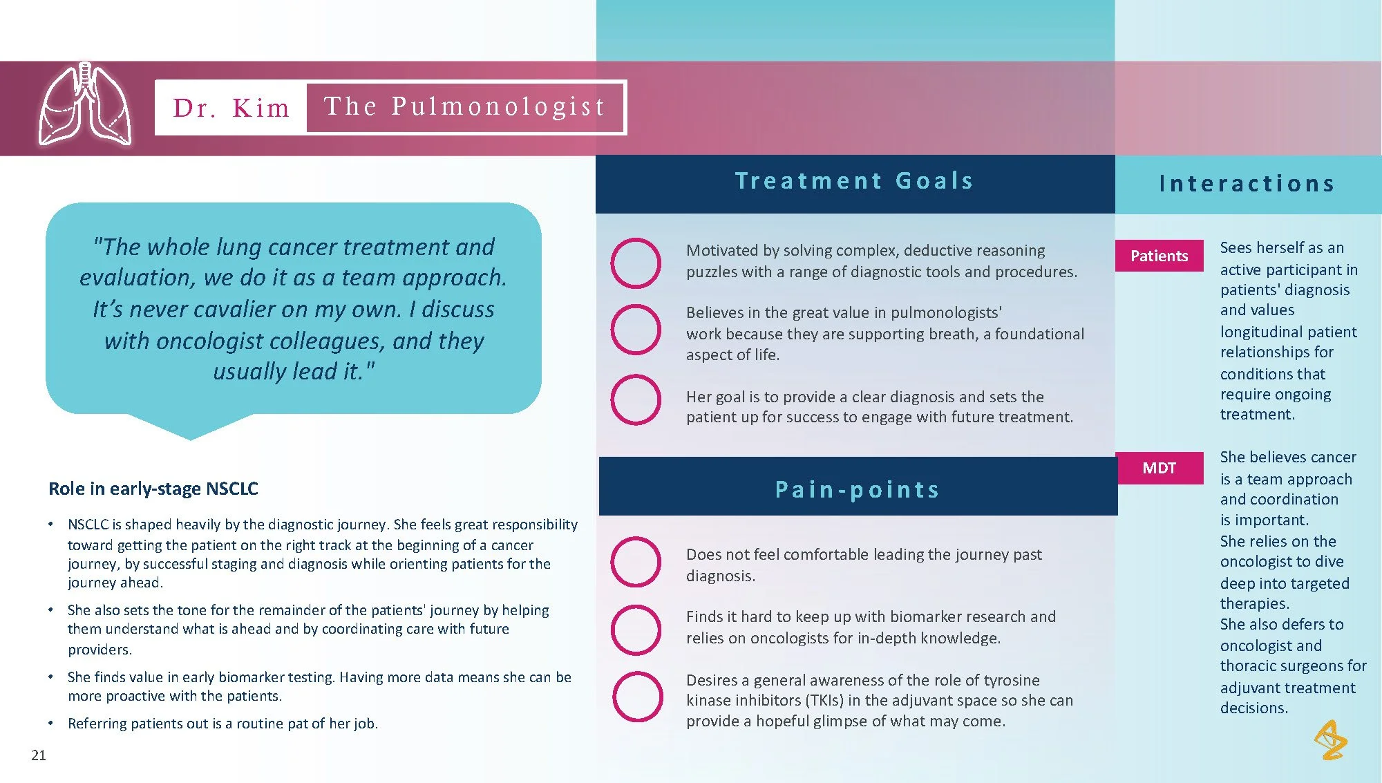 Consumer tension: Patients with lung cancer face overwhelming choices and limited personalized advice, making it difficult to feel confident in their treatment path. The lack of individualized information and support from their healthcare providers leaves patients uncertain and disconnected from their care process.