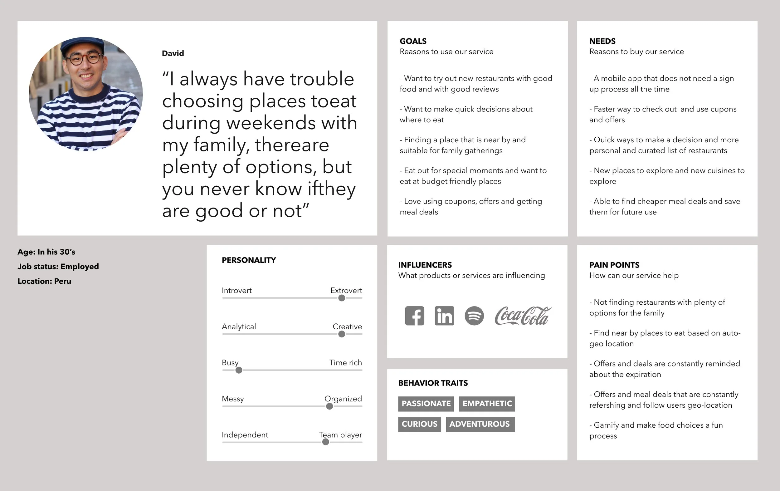 • Limited resources: Modest budget, limited time, Stomach space (How much could I eat now?)